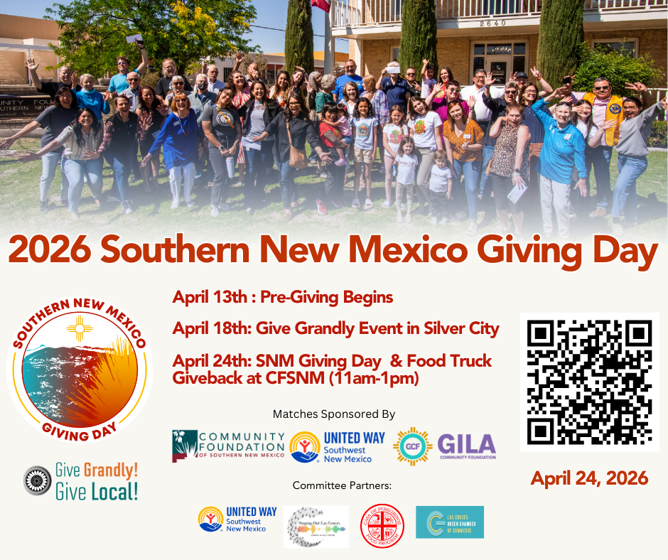 The Community Foundation of Southern New Mexico and the Gila Community Foundation will be hosting Southern New Mexico Giving Day, a regional day of giving designed to uplift local nonprofits and celebrate community generosity across 12 Southern New Mexico counties. This year marks the first year the two community foundations are partnering to host the event, growing the impact.