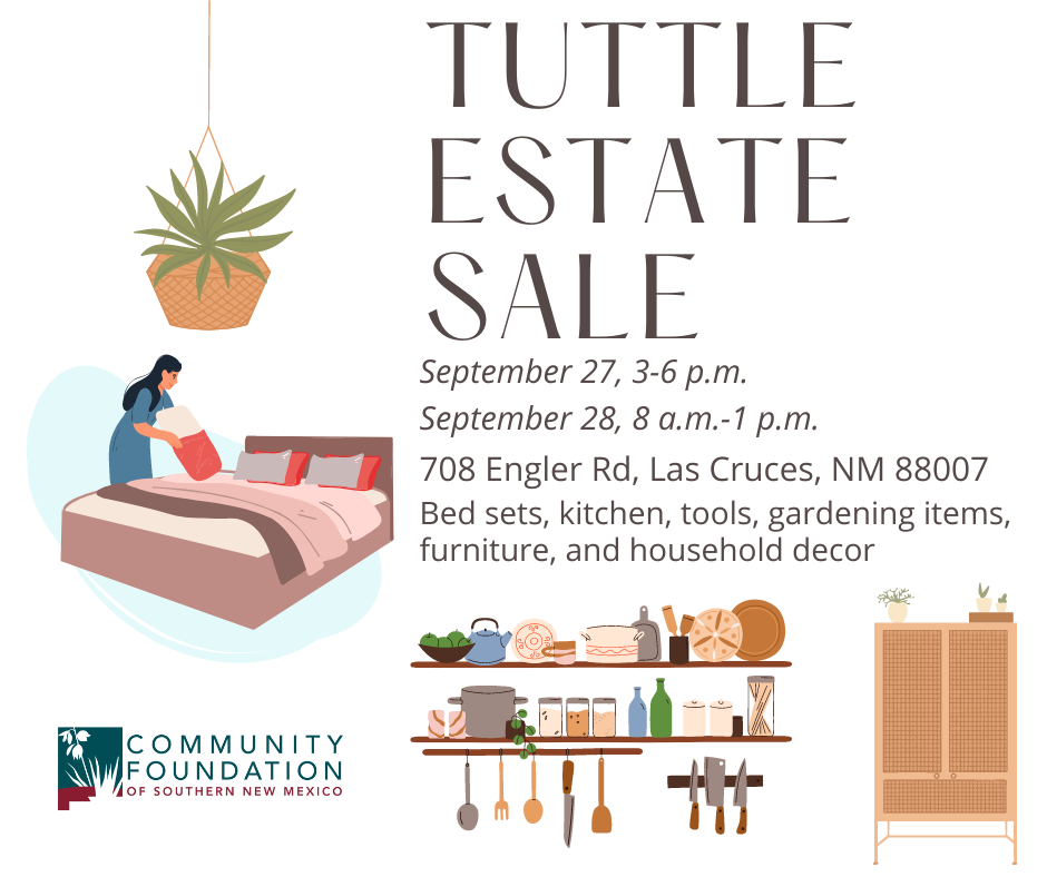Support the Tuttle Family Estate Sale! Proceeds support the mission of CFSNM and our aging neighbors! What: Tuttle Estate Sale When: September 27 from 3 to 6 p.m. and September 28 from 8 a.m. to 1 p.m. Where: 708 Engler Rd, Las Cruces, NM 88007 The money raised at this estate sale will go to […]