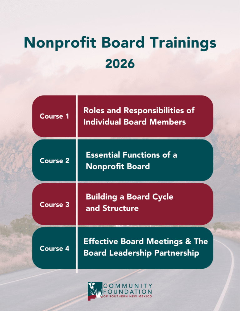 If your Board of Directors would like training please call us at 575-521-4794 or email info@cfsnm.org.
